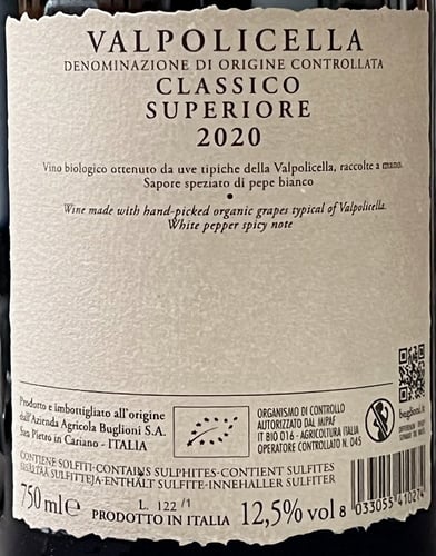 Hvordan er Buglioni Valpolicella Classico Superiore 44 Verticale 2020 ØKO fremstillet?