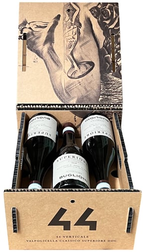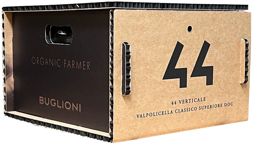 44 Verticale 2020 er fremstillet på et udsøgt blend af 65% Corvina, 20% Corvinone og 15% Rondinella, som Buglioni håndplukker fra et økologisk certificeret og meget grusholdigt terroir i Sant’Ambrogio, Valpolicella Classico. De afstilkede druer brydes nænsomt, inden vinen gærer med frugtbevarende temperaturstyring ved 28°C. Macerationenstiden er 12 dage, inden vinen omstikkes til 10 måneder lagring på mellemstore franske tonneauxfade. Herefter følger yderligere 15 måneders afrunding på flaske, før vinen frigives fra sit kølige kældermørke.