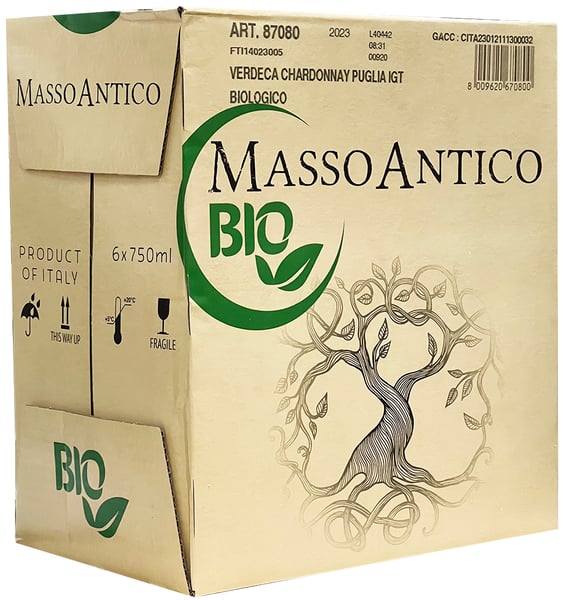 Den nye publikumsfavorit fra Masso Antico er skabt på 100 % Chardonnay, der høstes tidligt i september fra marker i den kendte, solbeskinnede syditalienske region, Salento. Halvdelen af mosten bliver gæret køligt og frugtbevarende på ståltanke, mens den resterende del får cremet og fadkomplekse nuancer fra modning med egetræ. Yderligere 3 måneders kontakt med de fine gærrester giver det sidste touch af cremet finesse til vinen inden frigivelse. Vinen er certificeret økologisk.