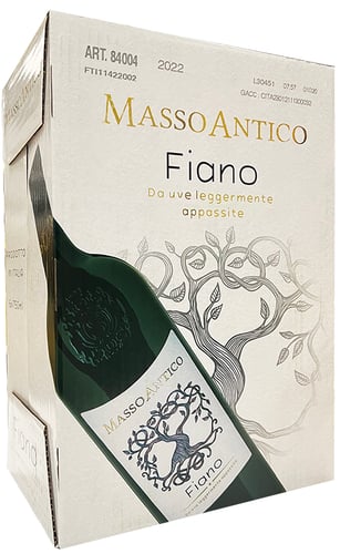 Masso Antico Fiano 2022 er fremstillet på 100% håndhøstede Fiano-druer fra Apuliens halvø, Salento. En del af druerne lufttørres i vineriet efter en Appassimento-metoden, som giver ekstra power og koncentration til den færdige hvidvin. Efter endt gæring på ståltank med frugtbevarende temperaturstyring tilføjes yderligere krydderi og en snert af sødme fra delvis modning på egetræsfade.