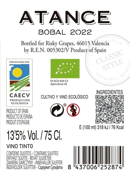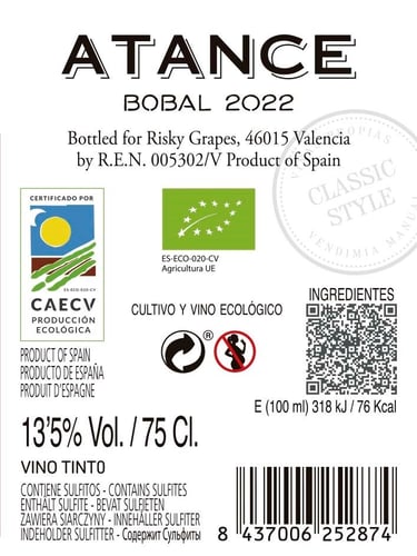 Atance Bobal 2022 funkler ved ophældningen med sin friske kirsebærrøde farve, der har friske violette nuancer langs kanten... Næsen lover super-læskende Bobal med sitrende friske frugtnoter af nyplukkede violer, vilde hindbær, granatæble, kirsebær og lidt bitterchokolade. Energisk vibrerende med friske urter og unik mineralitet fra sit højtliggende terroir ... I munden smygende silkeblød som et billardtæppe og tætpakket med slubrende hindbærsaftig frugt. Imponerende intensitet for prislejet, og tanninerne strammer madvenligt til i den læskende afslutning. Atance Bobal har aldrig været bedre… men skynd dig hellere at købe! Drik nu, eller gem 5-8 år fra høståret.