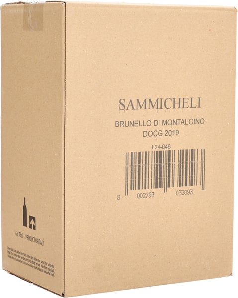Sammicheli 2019 er fremstillet på 100% Sangiovese, der håndplukkes fra et kalkstenholdigt Montalcino-terroir i 350 meters højde med kølende briser fra Thyrrenske Hav. Mosten gærer frugtbevarende på ståltank med 10-12 dages udblødning af drueskallerne. Herefter opnår Brunello-vinen ekstra dybde, kompleksitet og krydderier fra sin 2 år lange fadmodning, hvoraf 20 mdr. sker på traditionelle botti, før den omstikkes til yderligere 4 mdr. på eksklusive franske barriques. Inden aftapningen fuldendes vinen med afrundende modning ved kælderkølige temperaturer, indtil den frigives i femteåret efter høsten.