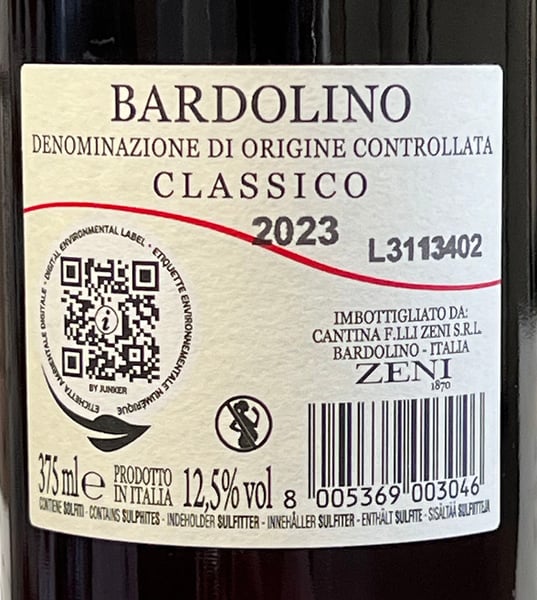 Zeni Bardolino Classico 2023 - Halvflaske 37,5 cl.