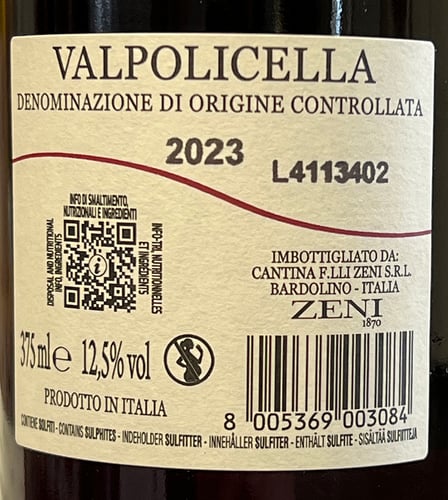 Zeni Valpolicella DOC 2023 - Halvflaske 37,5 cl. passer godt til...